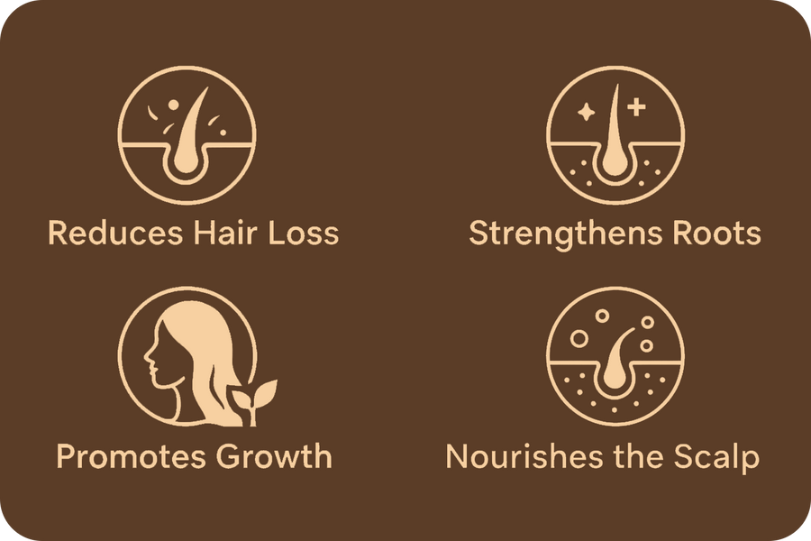 Infused with goodness of various ayurvedic herbs like : brahmi ,amla ,bringraj, tulsi, hibiscus etc. to nourish your hair roots from deep within naturally .